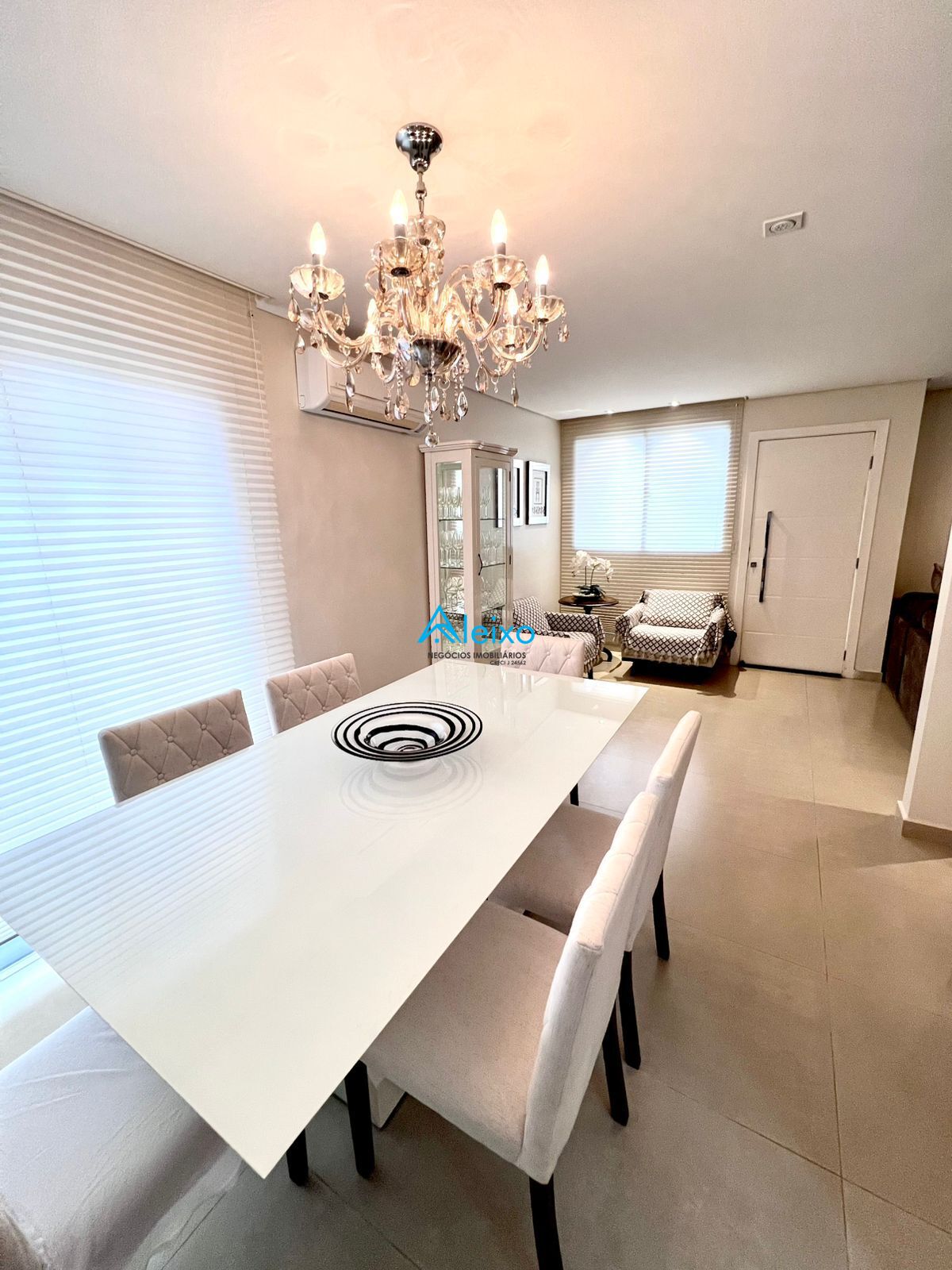 Possui dois quartos sendo 1 suíte com closet e outro quarto comum, 2 banheiros e 1 lavado, sala 3 ambientes, iluminação toda em Led, ar condicionado em todos os ambientes, água quente em todas as torneiras, cortinas e persianas, cozinha equipada com coifa e cook top, espaço gourmet com ar-condicionado, churrasqueira, balcão refrigerado com adega de vinho, corredor para entrada de funcionários, lavanderia rica em armários e tábua de passar roupa embutida, lustres de cristal na sala na suíte e no lavabo!