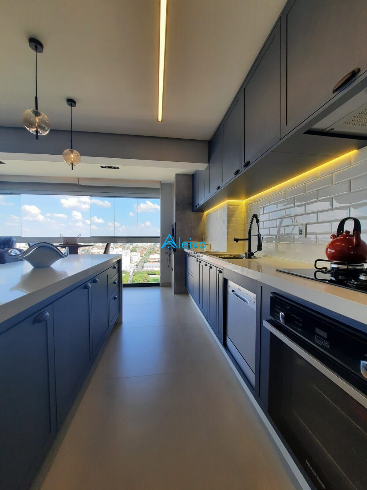 Espaço gourmet integrado com cooktop, coifa e